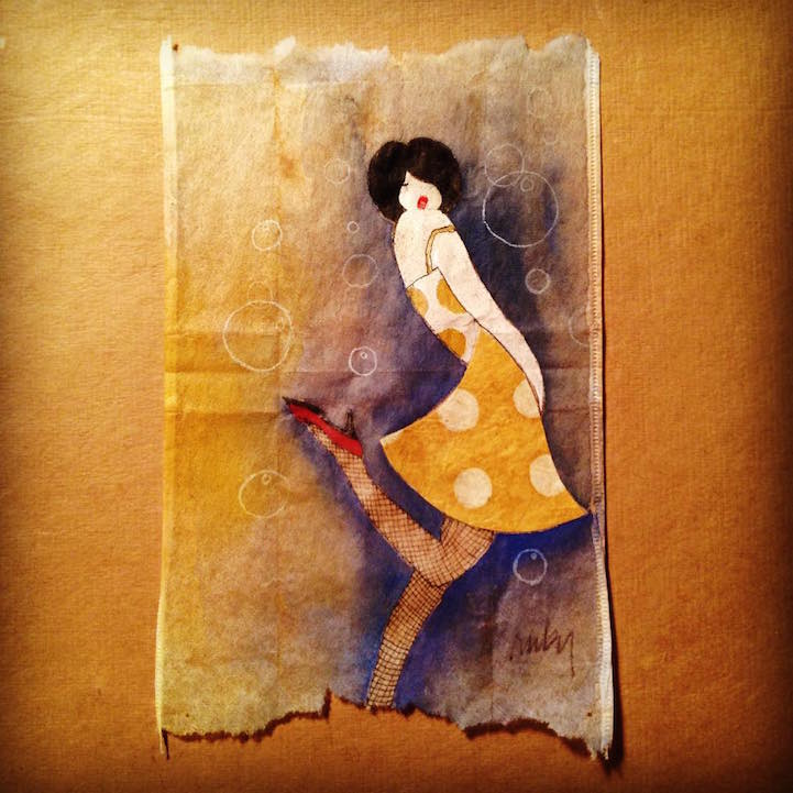 This project serves as Silvious' daily journal, allowing her to record her thoughts and feelings by creating wonderful moody and whimsical designs on little teabag papers. Every day she creates a new piece that reflects her impressions in that moment. Currently based in New York, Silvious' work has been exhibited internationally and she has received awards and recognition for her talents in paper work, print making and now her most recent endeavour of re-purposing recycled and found materials.