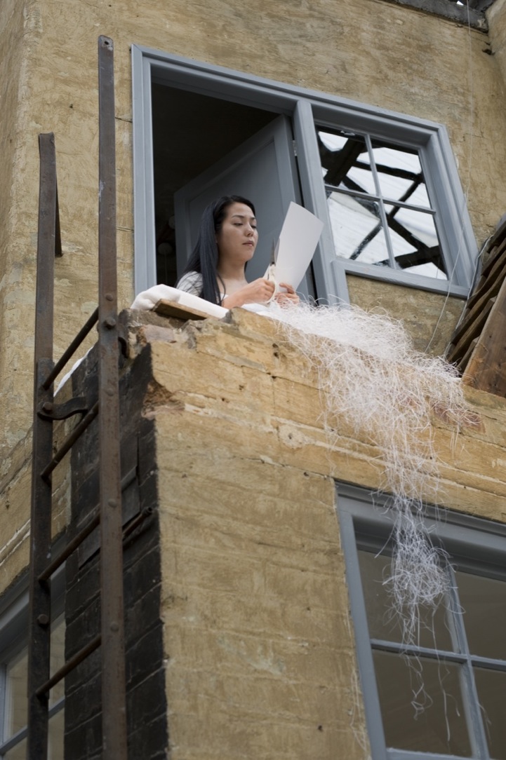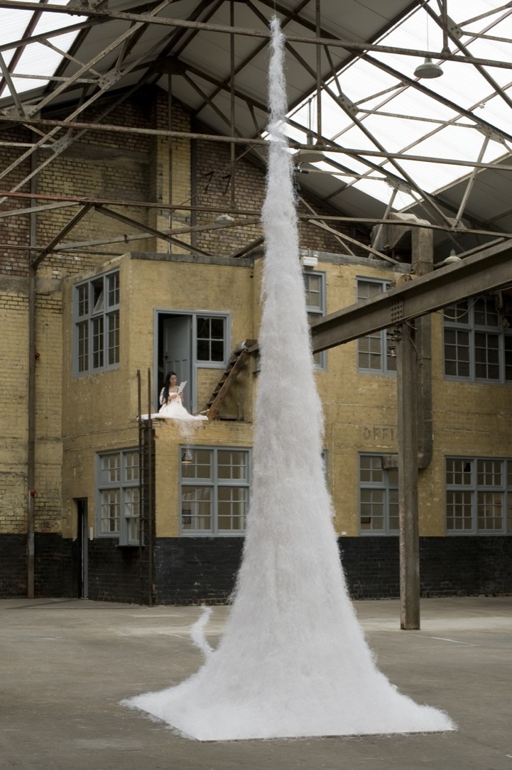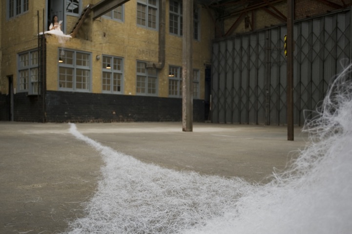 Japanese artist Sachiko Abe sits atop a building in a white gown, cutting countless sheets of A4 paper into thin, wispy strips. The performance piece known as Cut Paper is both calming and mystifying. Abe sits for hours on end meticulously shredding paper whose cut feathery strands measure a mere 0.5mm in width. She first began this practice while in a mental institution over 15 years ago because it proved to be a calming activity–an alternative form of meditation.
