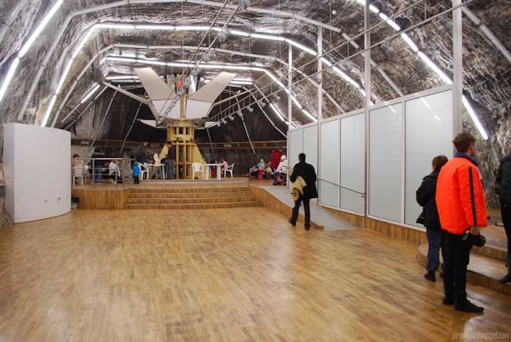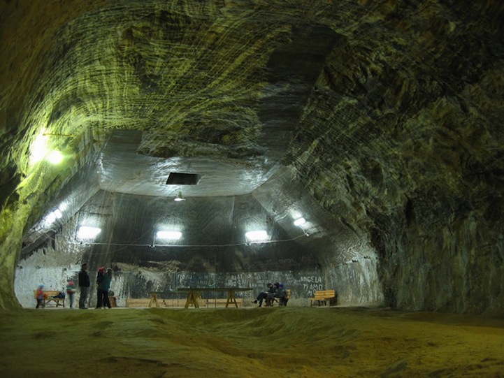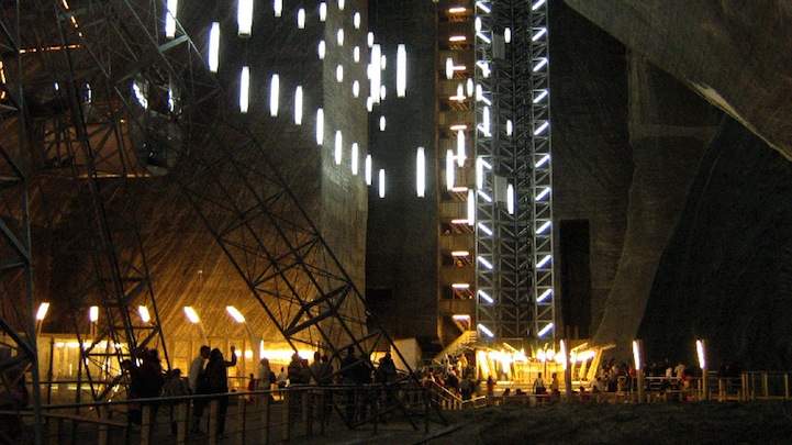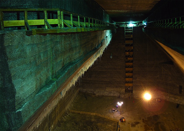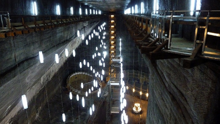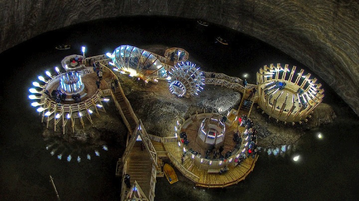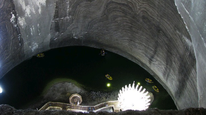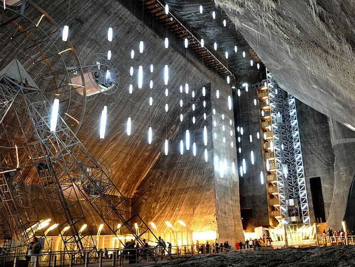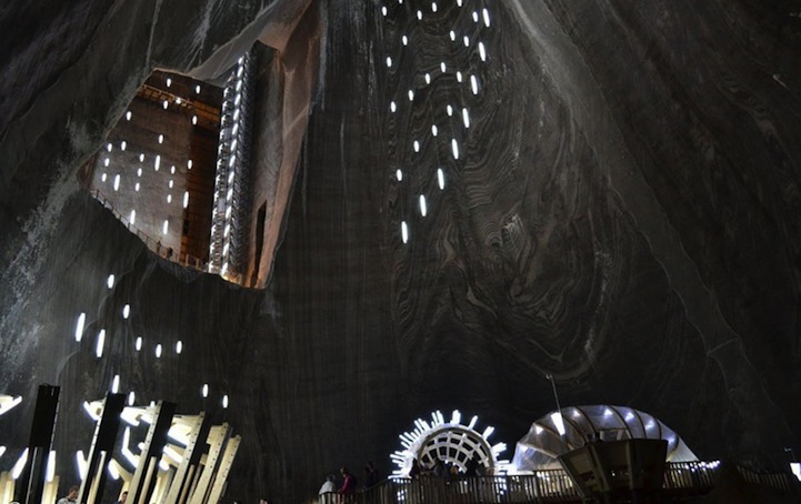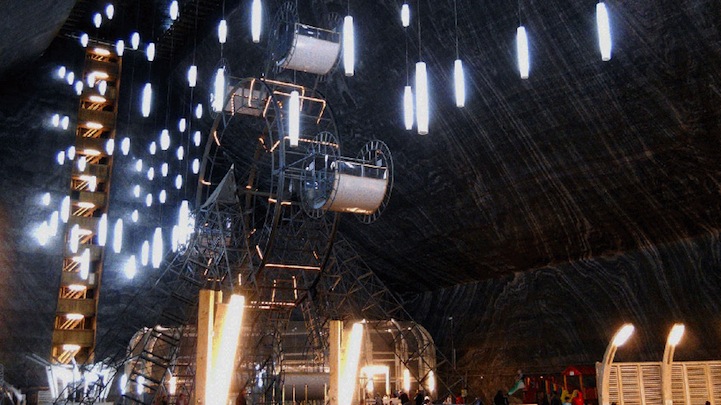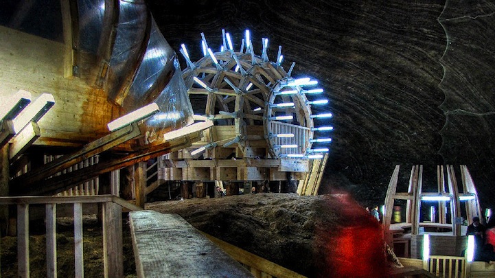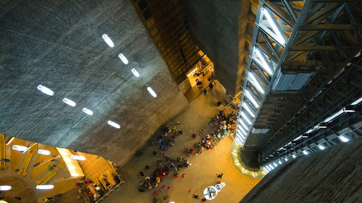 Inside the old Salina Turda Salt Mines located in Transylvania, Romania, stands the world's largest salt mine museum. Originally established in the 17th century, the massive mines were formed completely by hand and machine rather than by using explosives. Visitors are invited to descend as far down as almost 400 feet into the Earth in order to witness the history of the trade.