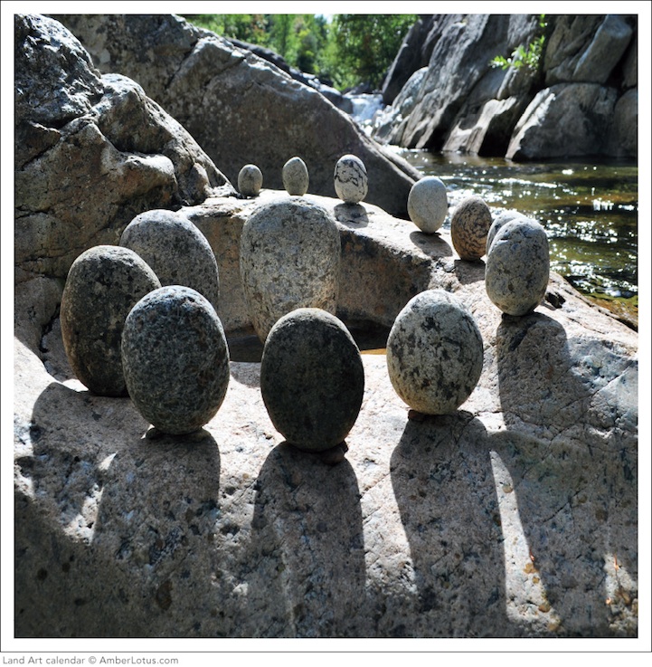 Her Land Art 2015 wall calendar from Amber Lotus Publishing showcases photographs of twelve of her earth art sculptures. If you're a fan of Andy Goldsworthy, Martin Hill, or Nils-Udo, you'll come to love and appreciate the work of Sally J. Smith.