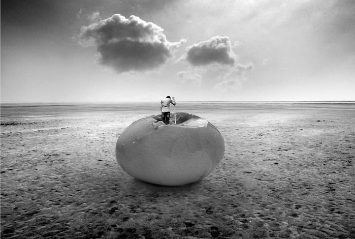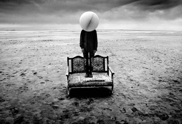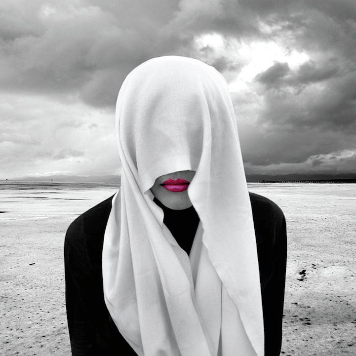 Each dreamscape offers a new level of calm creepiness, as though something sinister is about to occur, like the silence before the storm. Ghorbanzadeh's series titled Fictional Reality (alternatively known as Daily Dream) and Gray Nightmares are especially rich with these types of surreal imagery. Further heightening the ambience of each frame, the photographer follows a monochromatic scheme with the occasional hint of color on the cherry lips of a faceless woman.