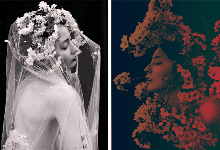 The conceptual art project features images that are soft and aged, with tinges of vibrant and unexpected color blending across the surfaces. Maruyama layers her subject together with textured flowers and gradients of color to form her captivating and mysterious abstract portraits. Viewers are encouraged to find their own definitions of beauty within Maruyama's unique visual manipulations.