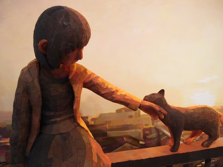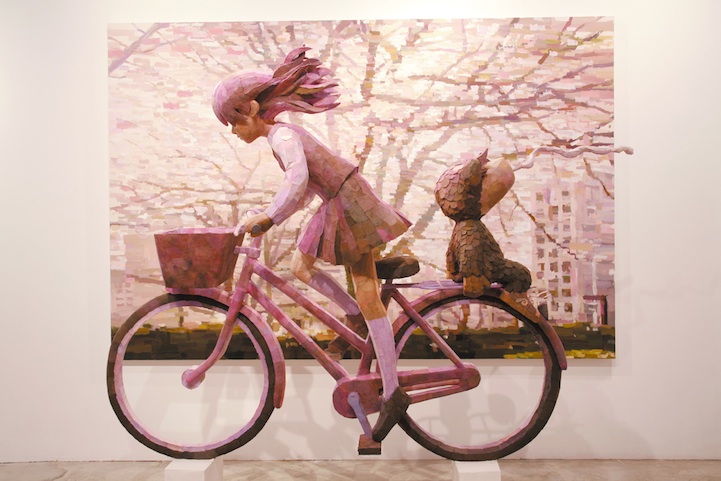 More than that, this artist has a unique style. He places sculptures in front of paintings! Combining 2D with 3D, he's an emerging young artist who's definitely one to watch.