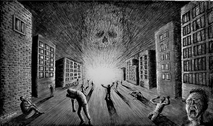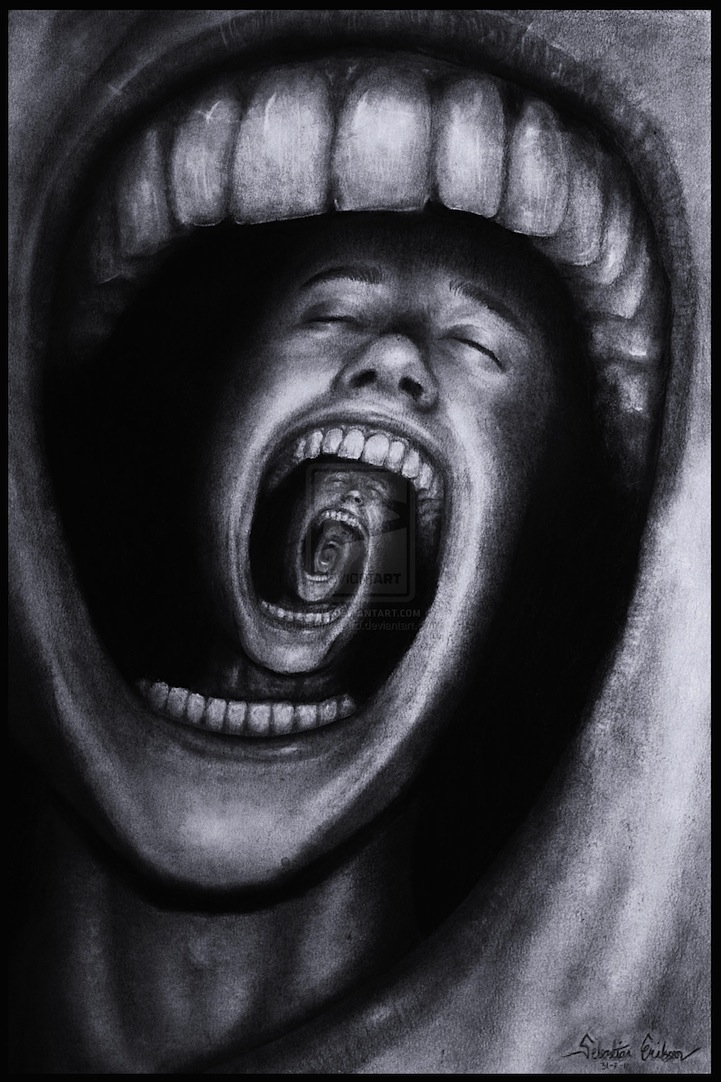 For instance, in the piece above, he states: “This is another paradox that I've been working on for a couple of days. It describes a person with psychological problems such as schizophrenia, insanity, depression or other mental problems. His endless screaming makes his own mind eat him up. I have periods in my life where I feel like this. I wanted to make an illustration of my thoughts and my pain within.”