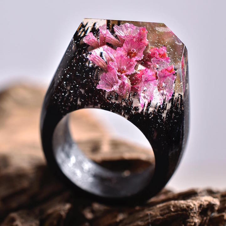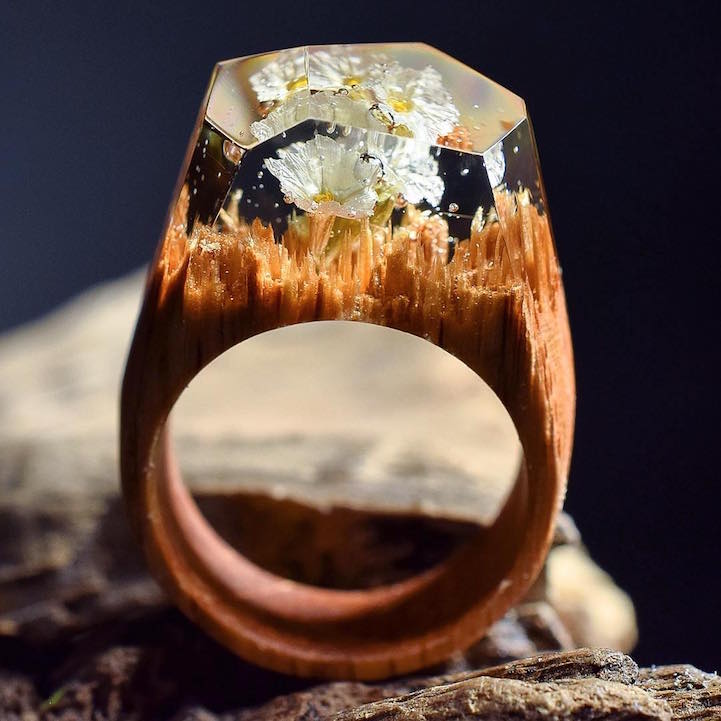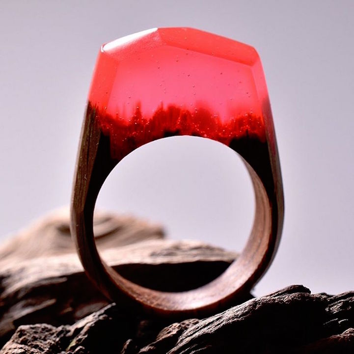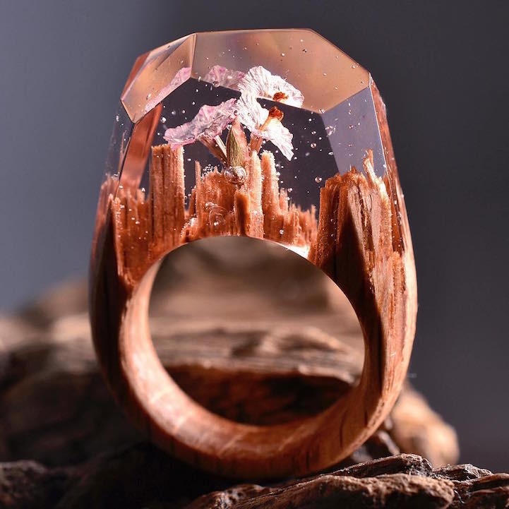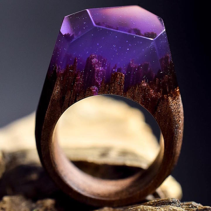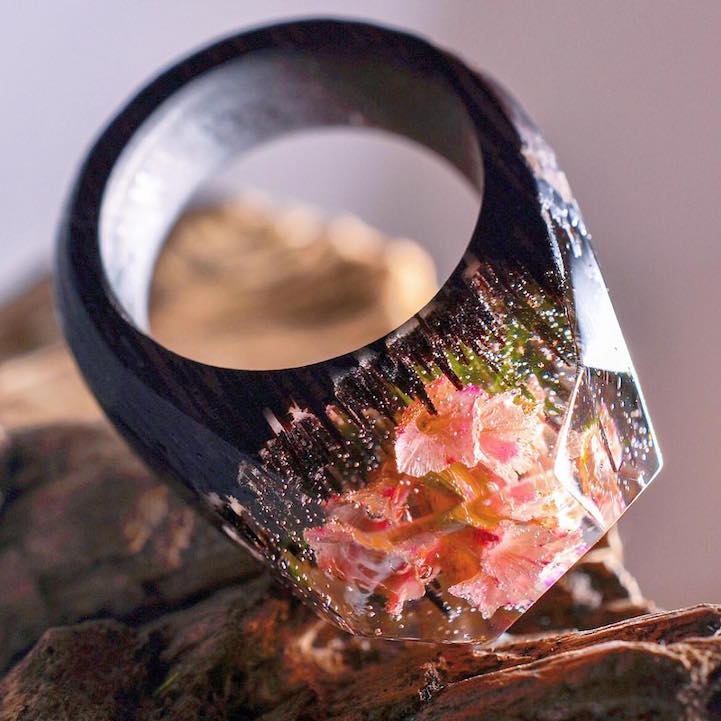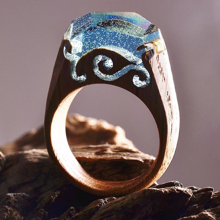 This past spring we became enamored with the handcrafted accessories of Secret Wood, a Canadian shop that encases tiny, exquisite worlds in rings made of clear resin and wood. Their beautiful designs feature mystifying places where miniature mountains and caverns are revealed beneath snow-speckled skies. Secret Wood has since continued to create gorgeous rings with new “places” that reflect the vibrancy of the season.