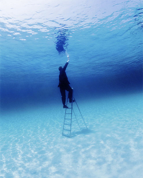 French artist Philippe Ramette believes nothing should ever be fake. His impossible, gravity-defying poses might look like classic Photoshop, but look a little closer and you'll see evidence that it's not. “You see a tension in my hands, my red face is far from serene as the blood rushes to it, my suit is ruffled,” said Ramette.