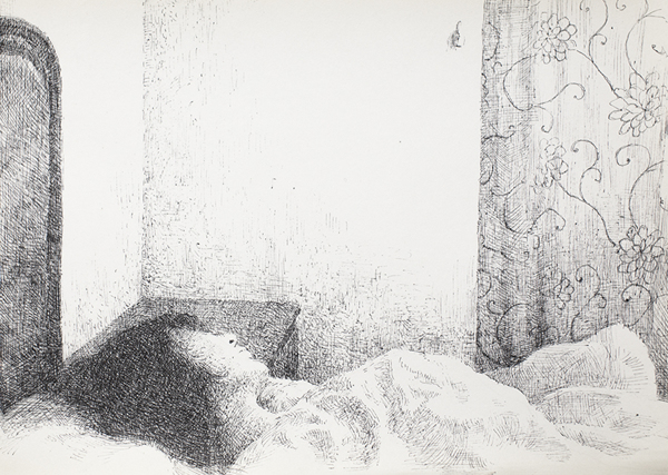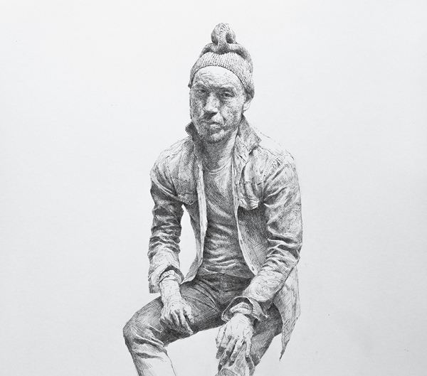 Artist Seong Jin Kim's beautiful black and white illustrations are composed of quick, short strokes that merge together into amazing scenes. His work is a beautiful blend of thin black ink with a stark white background. Up close, Kim's style appears to be rough and incomplete. However, the broader picture proves to be an extremely complex, emotionally-charged image that conveys a powerful story of loneliness and isolation.