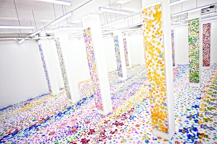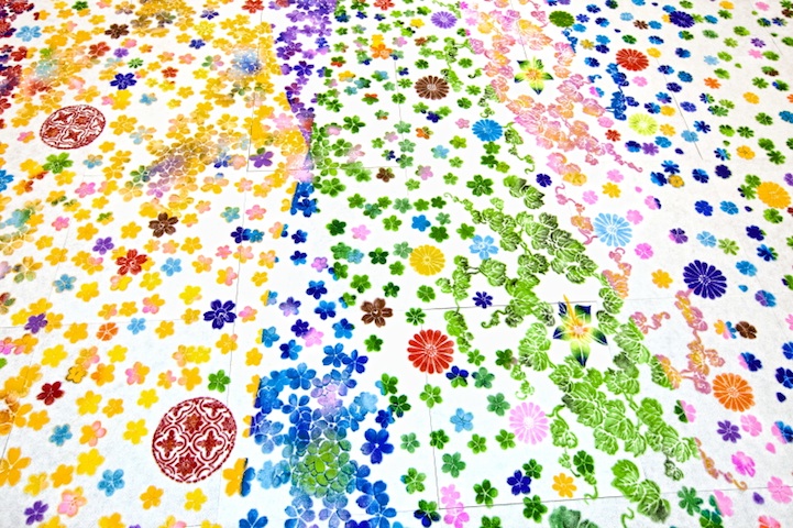 Japanese artist Shinji Ohmaki just sent us these photos of his latest installation at the Singapore Art Museum. Known for bringing bare white rooms to life with his use of pigments and stencils, Ohmaki worked with a team, over the course of 10 days, to create this colorful wonderland. Called Echoes-Infinity-The Forest, the installation opened on May 18 and is being exhibited until August 12. These images were taken before the opening or before children were invited to walk over the pigment flowers. As they fade and blur, Ohmaki hopes it reminds us about the transient nature of life.