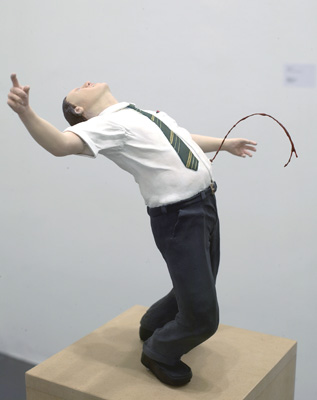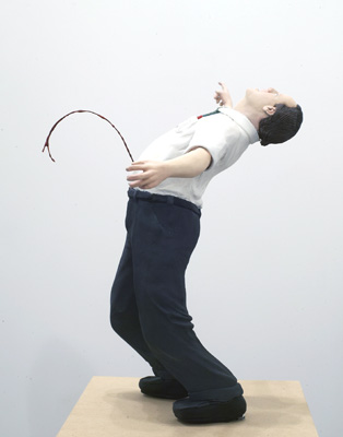 Ouch! That's gotta sting… Through this glorious sculpture, Swedish artist Thomas Broome freezes time and shows us what it looks like to get shot in the back. I'm captivated by the movement of this piece. The squirting blood was also a nice touch, don't you think?
