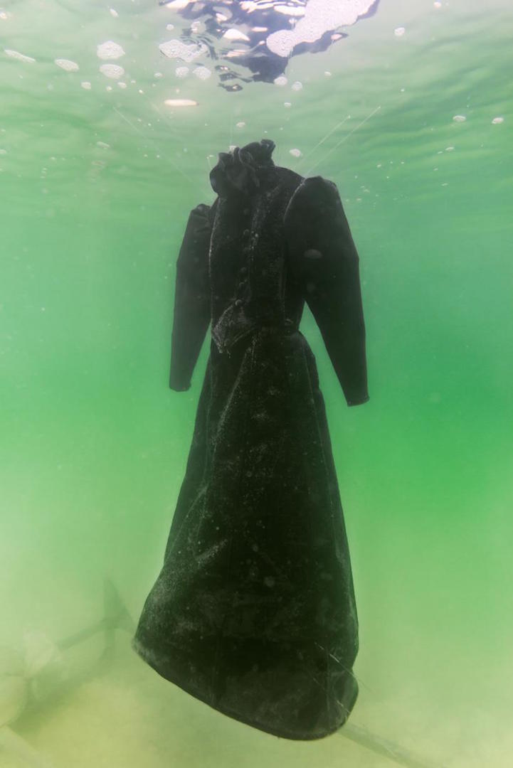Her latest project, an eight-part photo series called Salt Bride, represents a uniquely captivating collaboration with the mysticism inherent in the cherished lake's chemistry. Landau submerged a black gown in its waters in 2014 and returned multiple times over the span of three months to capture its salinity-induced transformations, as glimmering crystals gradually conquered the dark fabric. To Landau, the dress soon appeared “like snow, like sugar, like death's embrace”—poetic language to describe an effect that manifests as delicately magical, despite its earthly genesis.