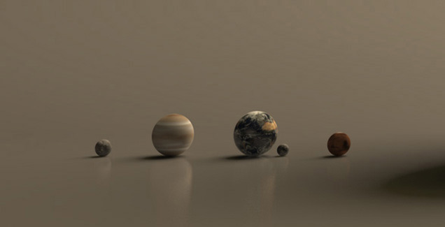Ziche took on the task of revitalizing the age-old planetary size chart after noticing how disappointingly uninspired the design for existing educational materials was. The celestial bodies were computer rendered in 3D, with the lighting in the image emanating from its Sun using multiple graphical layers. This meticulous composition work leaves the viewer with a stunning depiction of the massive scale of our planetary neighbors.