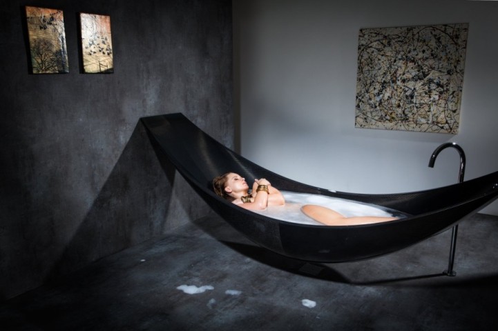 Splinter Works may have created the ultimate way to relax with Vessel, a new and elegant take on the modern bathtub. The design resembles the imagery of a hammock, and is constructed out of carbon fiber for its strength and ability to form complex curves. Floating off of the ground, Vessel is attached to the walls by two stainless steel brackets that can be covered or left bare and is filled by a sleek floor standing tap. As for drainage, there is a a built in water release at the base of the design, though a down pipe drain can also be installed if needed. Measuring nearly 9-feet in length, this sculptural tub also comes in a variety of colors such as red, blue, yellow, pink, bronze and pure silver, as well as different custom sizes to best suit the buyers personal preferences.