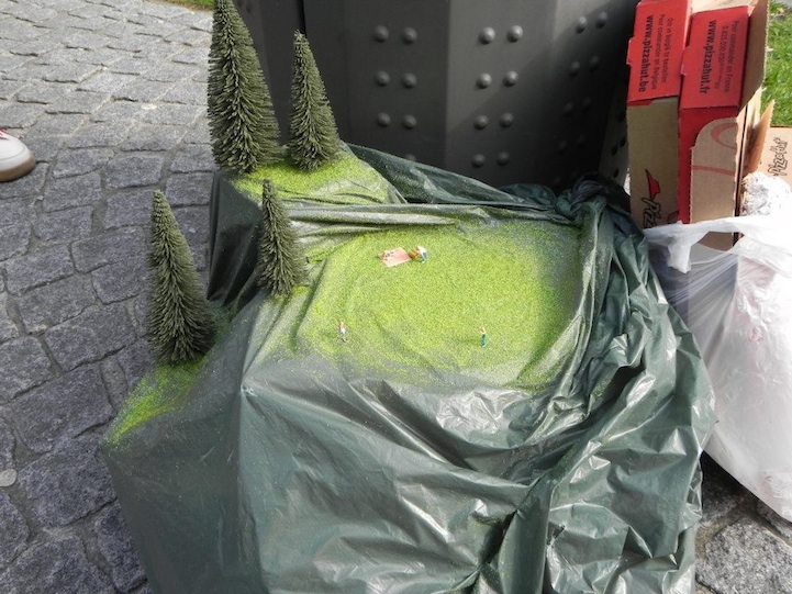 Just this past month, we also saw five new works by the London artist on the streets of Antwerp, Belgium. Crowds were asked to track down these installations and so they scoured the streets looking for Slinkachu's works in public places. (How much fun would that have been!) See them below.