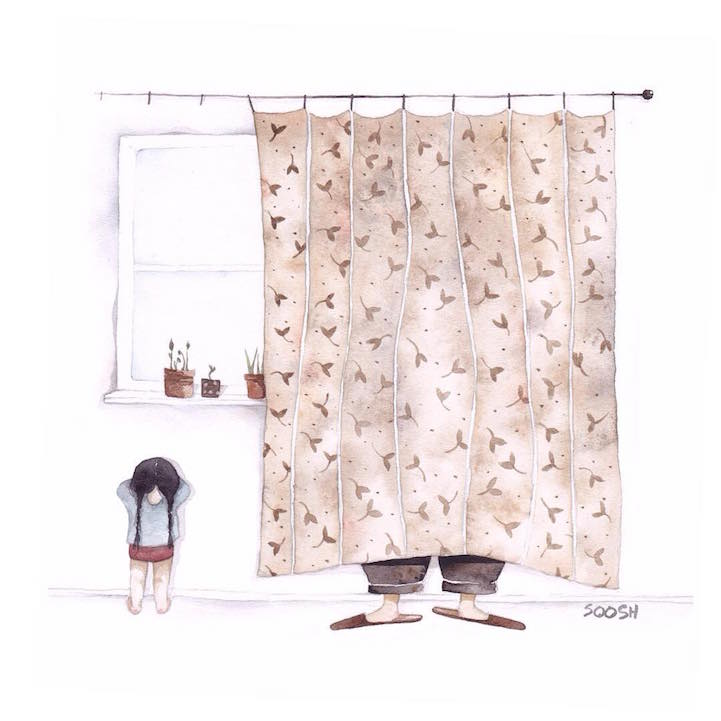 Ukrainian artist Snezhana Soosh is a mom to a 9-year-old son, but it's fatherhood that has inspired her darling illustrations. In whimsical washes of watercolor and ink, Soosh depicts the precious bond between an imaginary dad and daughter in a series of small, sweet moments.