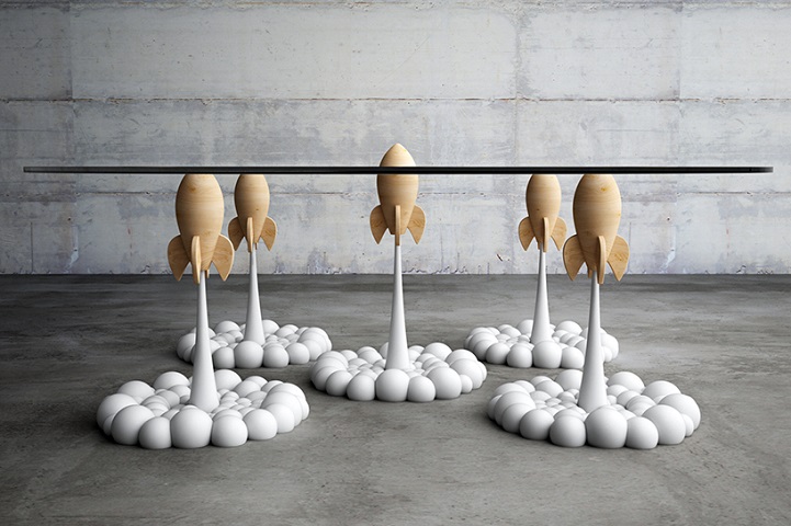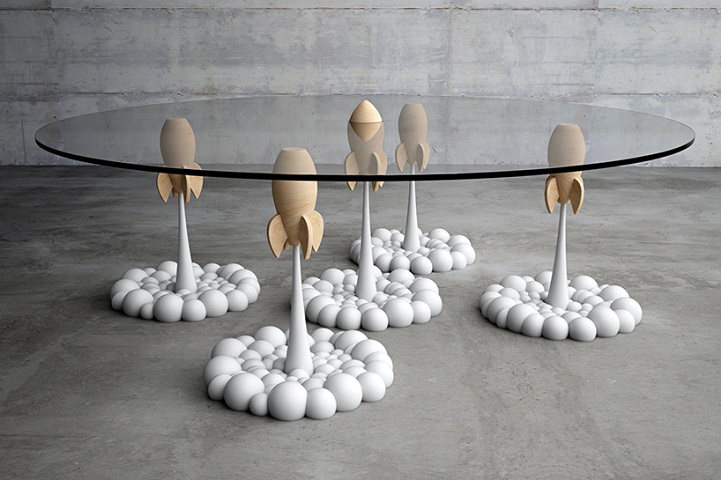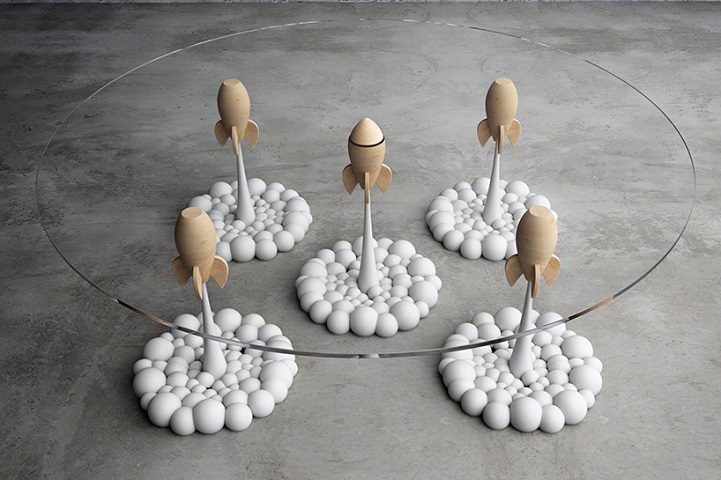 Mousarris' design offers a fresh spin on a decidedly adult purchase, recalling the carefree ambience of days spent playing with collectables and watching cartoons for hours on end. The fanciful piece is also customizable: the individual rockets are unattached to the glass top, so each of the owners may generate a shape and structure that appeals to them. Through his concept creation, the Cyprus-based designer captures the innocent childish fun of youth and invites one to take a stroll down memory lane.