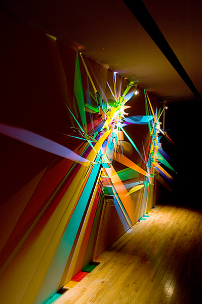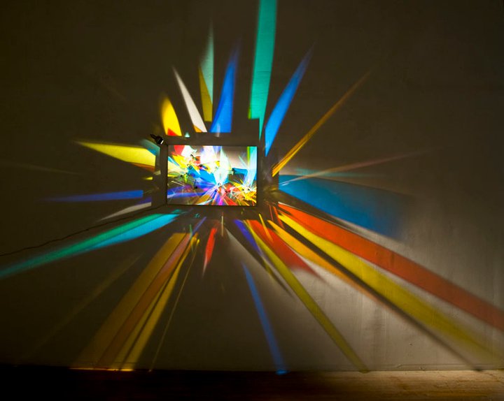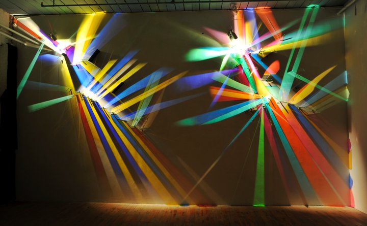 Though it may be hard to believe, no paint was used in these sculptural installations. Instead, Stephen Knapp is the artist behind lightpaintings – artworks created entirely with just refracted white light and glass. Knapp uses dichroic glass that's treated with layers of metallic coating. Combined, they act like a selective prism, separating focused light into different frequencies of the spectrum. In essence, he separates white light into a dazzling array of colors.