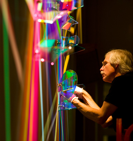 As he states, “I have been fascinated with light all my life, both for what it can do and for the effect it has on us. In all my prior mediums I've used light in ways that are not always apparent. When I found a way to uniquely express myself in light, I embraced it fully. With my lightpaintings, I separate white light into pure color and ‘paint' with light. Each piece has a presence that far exceeds its physical dimensions. At once both physical objects and illusions, they remind us that dreams, hopes and aspirations are the center of art's ability to touch the human spirit.”
