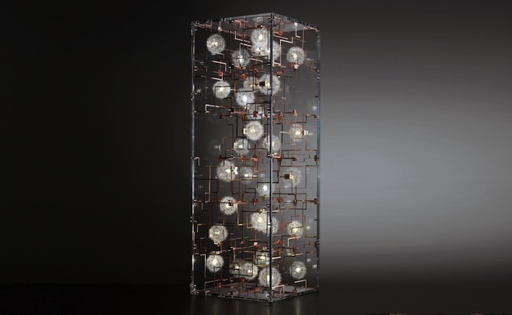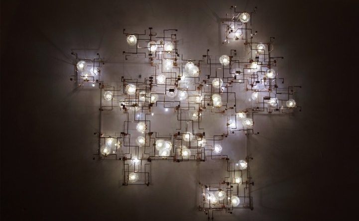 The designers behind this concept are Lonneke Gordijn and Ralph Nauta. The team has created a module system that consists of a visible circuit with three dandelion lights. Now, up to 500 modules can make up one light sculpture.