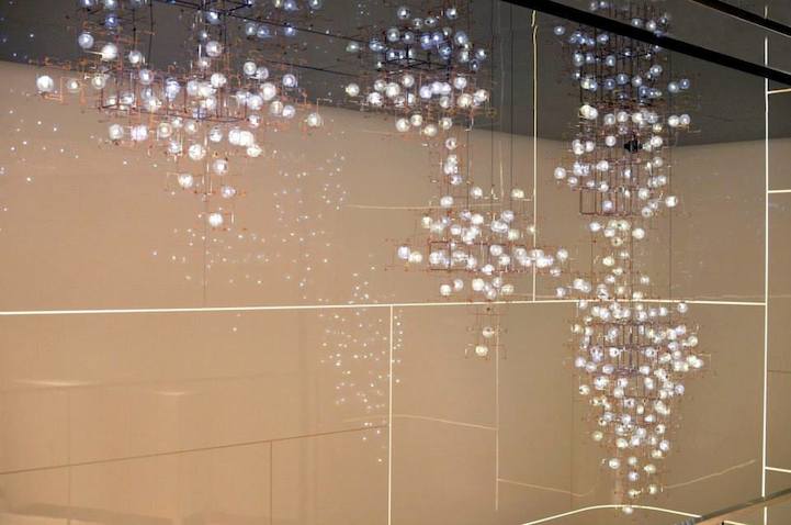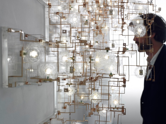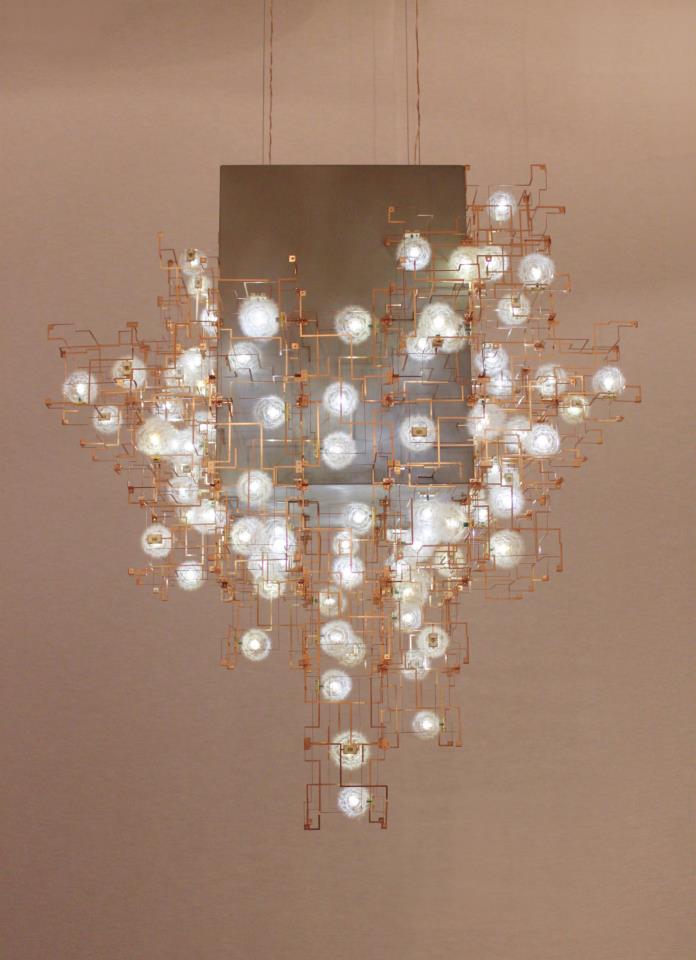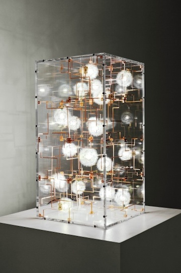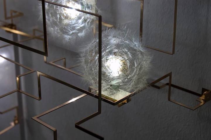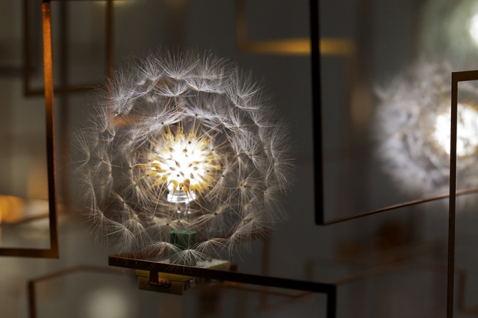 Entitled Fragile Future III, these highly sculptural light fixtures are made of bronze, LED's and real dandelion seeds that were meticulously picked by hand and then connected one by one to the lights. The Dutch artists Lonneke Gordijn and Ralph Nauta of Studio Drift strive to promote critical engagement through their conceptual work and the use of this labor-intensive process is a clear statement against mass production and throwaway culture.