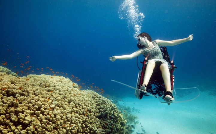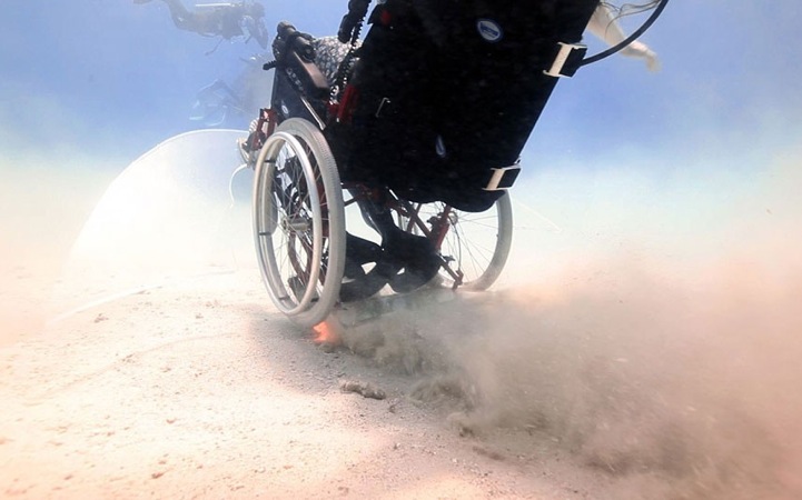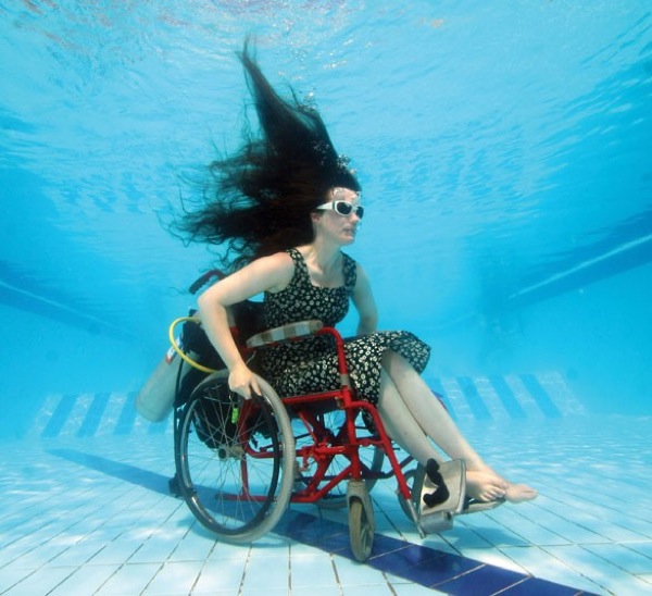 Performance and installation artist Sue Austin has been using a wheelchair for 16 years. As an artist, she embraces the experience as a foundation for her artwork, where she challenges the stigma of the disabled as ‘other' and creates opportunities for empowerment. Her website states, “Over an extended period of time her practice has operated as a vehicle to open up a thinking space around the materiality of the wheelchair.”
