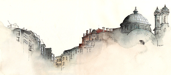 Gorgeous Fragmented Watercolors Form Soothing Cityscapes