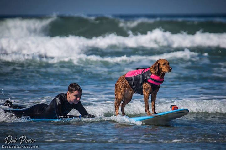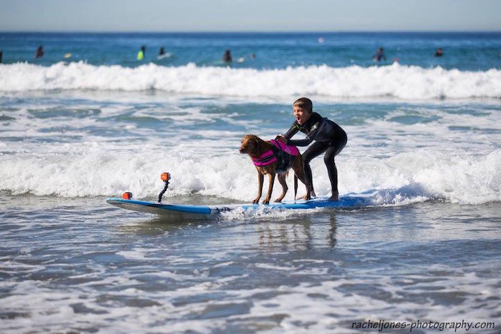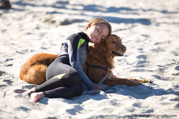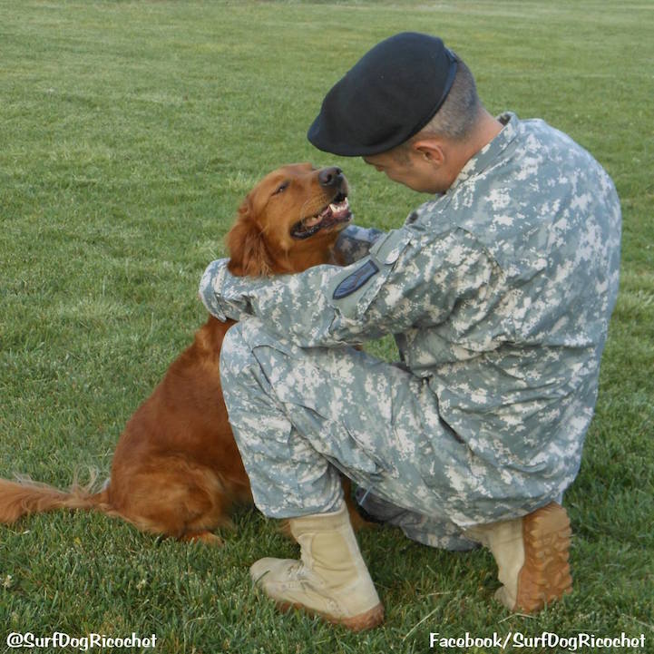 Outside of surfing, Ricochet also provides therapy and comfort to children with special needs and adults with PTSD, including veterans.