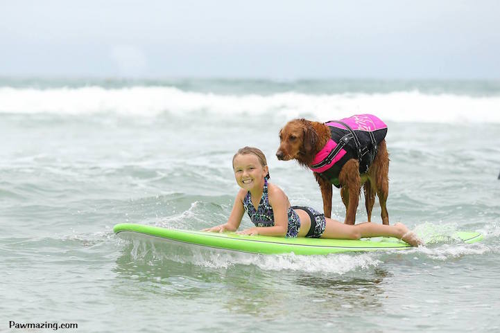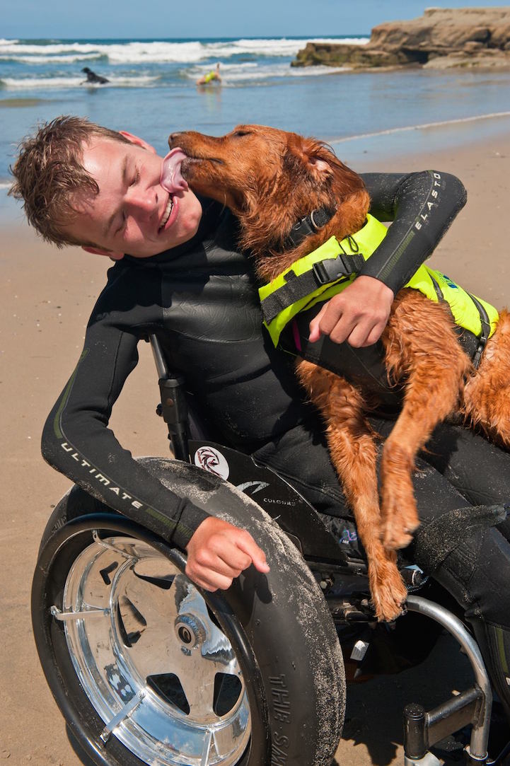 Meet Surf Dog Ricochet, a 7-year-old pup with a heart of gold and the amazing ability to help heal and inspire people with disabilities through the power of surfing. Born in January 2008, the golden retriever was originally trained as a service dog, and quickly gained the reputation of a “puppy prodigy” as she learned how to navigate difficult tasks like opening doors, switching lights on and off, and unzipping clothing. As she grew older, however, it soon became clear that Ricochet's boundless energy and love of chasing birds made her a little too spirited to be a service animal. Luckily, her owner was able to find Ricochet a purpose in life that makes her truly happy–surfing!