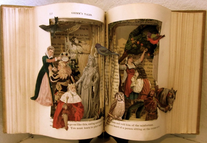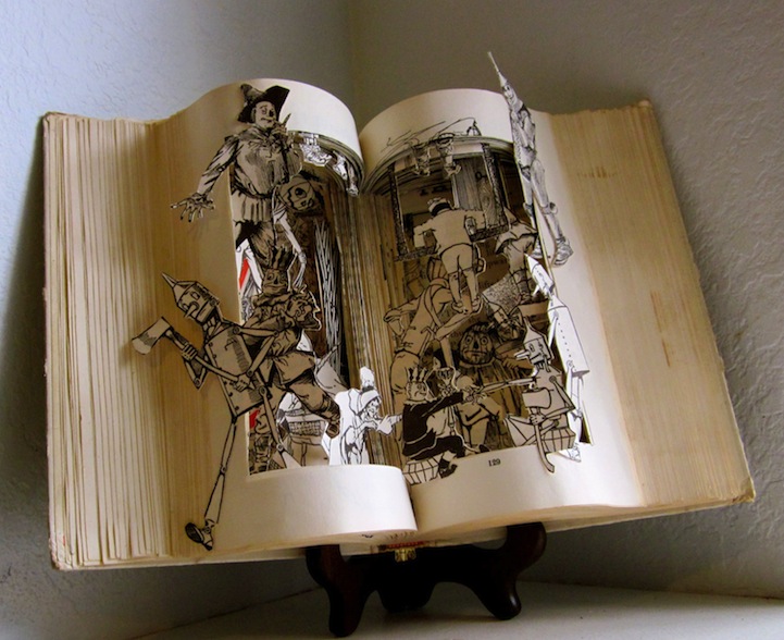 Reading fairy tales can awaken a child's creative senses as they imagine the characters popping out of the books. With these Altered Books sculptures by Susan Hoerth, aka Raidersofthelostart, it becomes a reality. The Texas-based artist collects vintage, discarded books and redesigns them into wonderfully imaginative sculptures reflecting the stories they hold within their text. Hoerth transforms classic books from Alice In Wonderland and The Wizard of Oz to A Christmas Carol and Grimm's Fairy Tales.