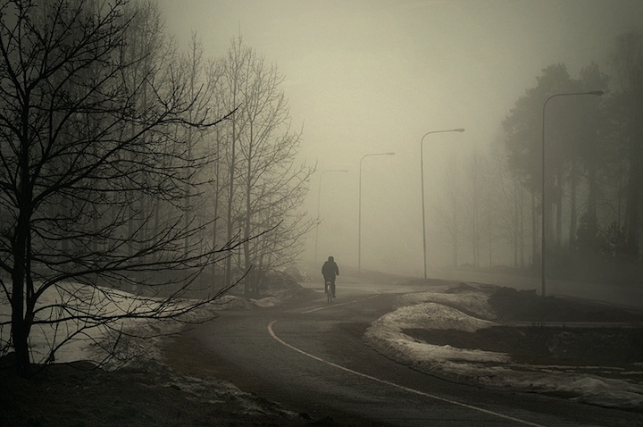 Graphic designer and photographer from Finland Mikko Lagerstedt has a rare ability, he knows how to create a mood. Whether he's accentuating the density of fog or shooting a shadowy figure far away in the distance, all of his photos carry with them a dramatic feeling. It's like you're witnessing a spliced scene from an edge-of-your-seat suspense thriller, that crescendo moment before you let out a bone-chilling scream.