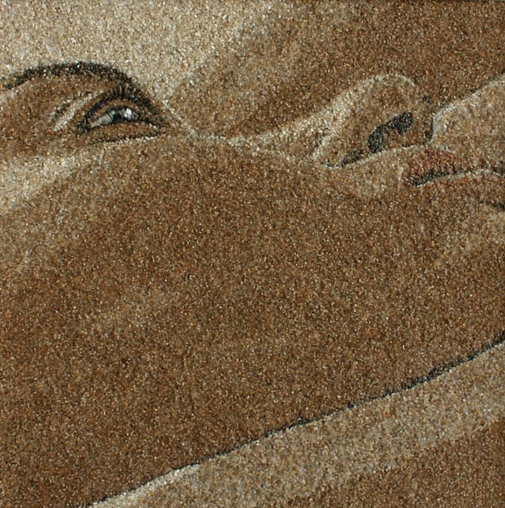 A variety of sand, shells, and pebbles are artistically composed to make up each stunning creation. The artist merges the various textures and colors brilliantly, making it difficult to imagine the frames being made of anything else. In some of the works, Ivanchenko has chosen to create the bulk of the shot with a flat layer of multi-toned sand and a simple cluster of shells or pebbles. Other pieces are incredibly textured and meticulously detailed, making them seem almost sculptural. In both cases, the creative embellishments do the respective images artistic justice.
