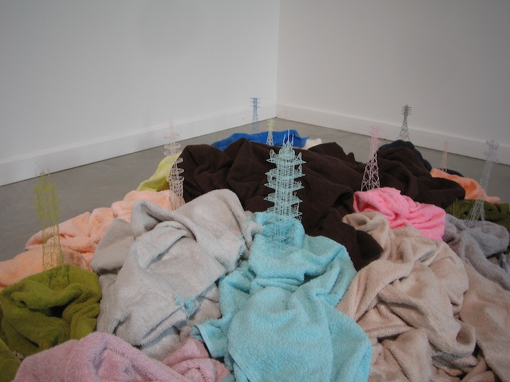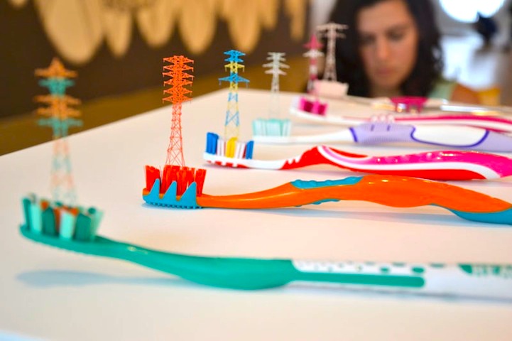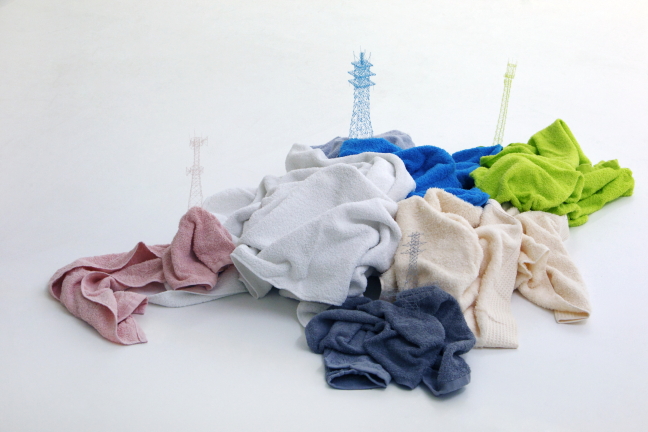 Japanese visual artist Takahiro Iwasaki manipulates common objects, transforming them into intricately designed sculptures. From carving into rolls of tape and carefully assembling the loose threads from towels and socks to architecturally constructing the bristles from toothbrushes, Iwasaki repurposes ordinary objects into extraordinary landscapes and tiny monuments in his Out of Disorder series.