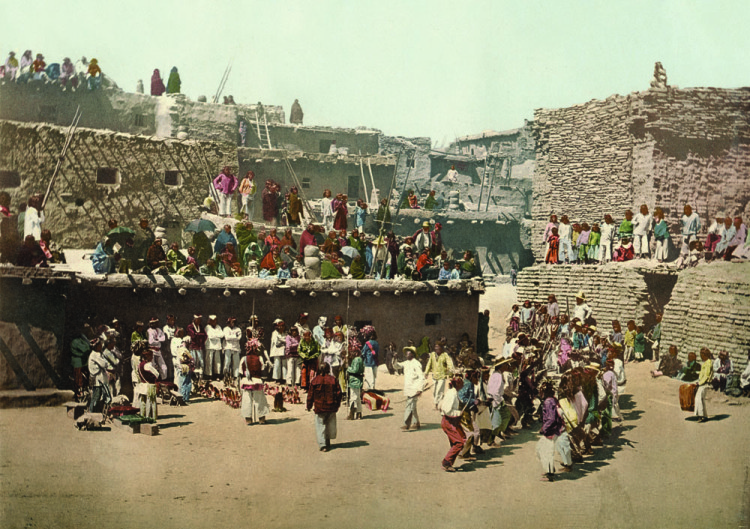 William Henry Jackson, Zuni Pueblo Indians, the Rain Dance, New Mexico, photochrom.