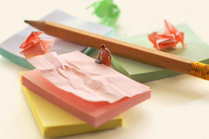 Artist Tatsuya Tanaka creates intricate miniature worlds that are equal parts thoughtful, detailed, and whimsical. On a daily basis, the Japanese artist works on his Miniature Calendar project by utilizing everyday objects, handmade tiny figures, and an immense amount of imagination. With these tools, Tanaka fabricates diminutive scenes that mirror relatable situations we'd witness in our own life-size world.
