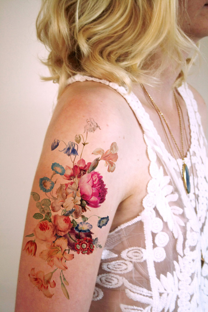 While this summer we're predicting that metallic flash tattoos will be all the rage, we're also loving these more vintage temporary tattoos featuring flowers. Tattoorary is a Netherlands based company that sells these handmade works of art that will last for up to a week. While their Etsy shop is filled with animal tattoos – swallows, fox, and even a steampunk octopus – it's their floral designs that have us swooning. We're particularly smitten over their blue Delfts Blauw-inspired (or Delft Blue) tattoos. As the company writes, “You can get so many pretty things in Delfts Blauw and I love to make something that shows my love for Holland and Dutch designs.”