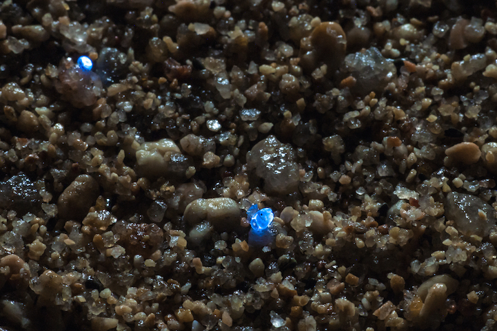 Like shimmering blue diamonds glowing amidst the night sky, The Weeping Stones, a photo series by Tdub Photo, captures the stunning glow of rare and beautiful bioluminescent shrimp against the sands of the Seto Inland Sea in Japan.