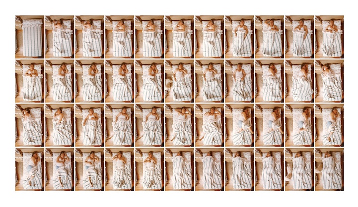 Using time-lapse equipment on his camera, pointed directly above the sleeper, Spagna uncovered the “hidden landscape” of sleep and dreams. With each portrait consisting of about 30 images, taken at fixed intervals throughout the night, the chronological photos are an eye-opening look at how we all sleep.