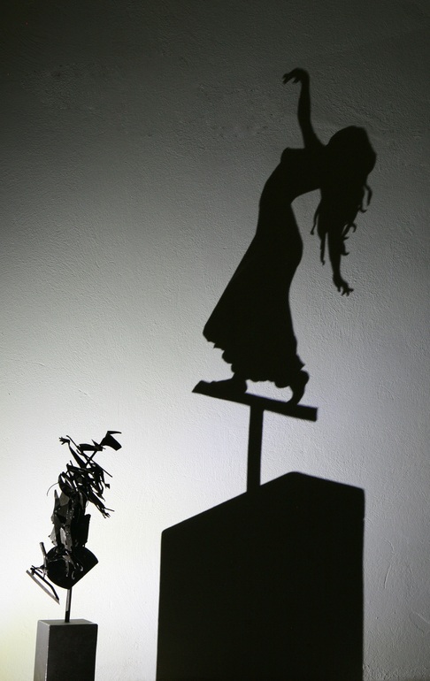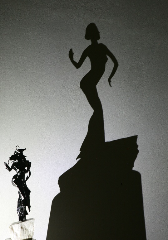 Auera's keen understanding of light and shadow delights the viewer on both the wall and in 3D. Many of his iron sculptures are beautiful in their own right, and tell a story through tiny details held within. Once a shadow is cast, however, the viewer gains a deeper understanding of his forms. The rigidity of the iron brings their shadows to life.