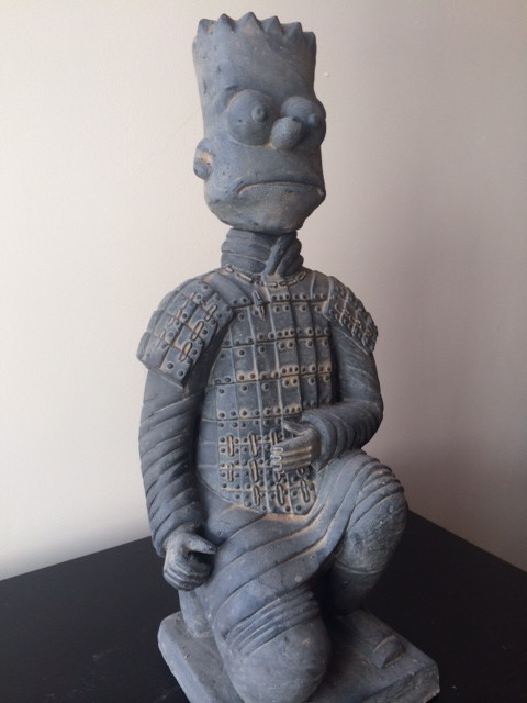 In a whimsical twist on ancient artwork, a terracotta army of sculptures re-imagines cartoon characters as stoic heroes. San Francisco-based artist Lizabeth Eva Rossof designed the army and hired an authentic terracotta-warrior replicator to manufacture the figures. Rossof's sculptures are comprised of the same materials as the iconic army guarding the tomb of China's first emperor in Xi'an.