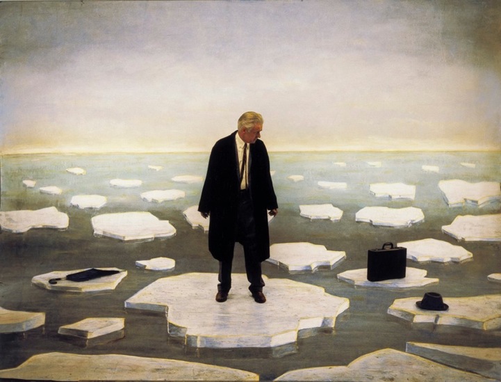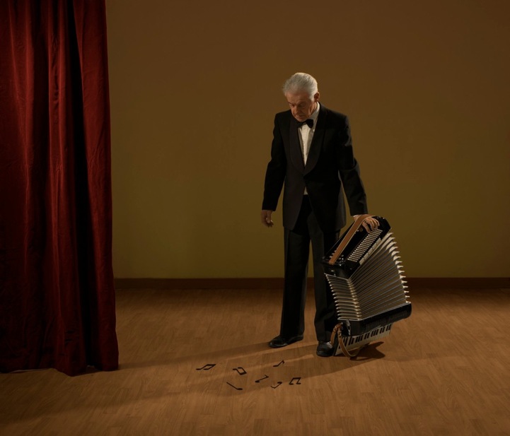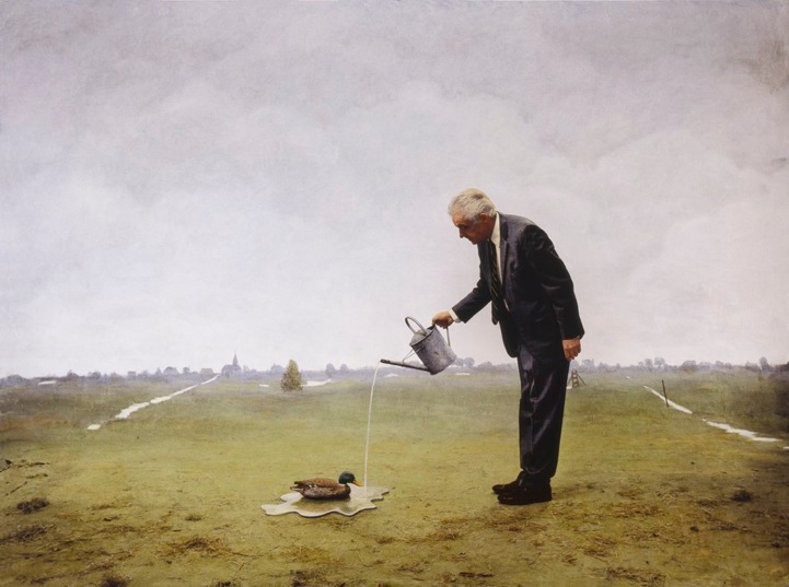 The Dutch photographer's series of photographic creations remind me of Gilber Garcin‘s body of work that, too, reflects on a man's standing in life. While they differ aesthetically, they share a similar quirkiness in their content. Both Hocks and Garcin place themselves in front of the camera, representing the average man at a point in his life where he is met with adversity and questions his next move.