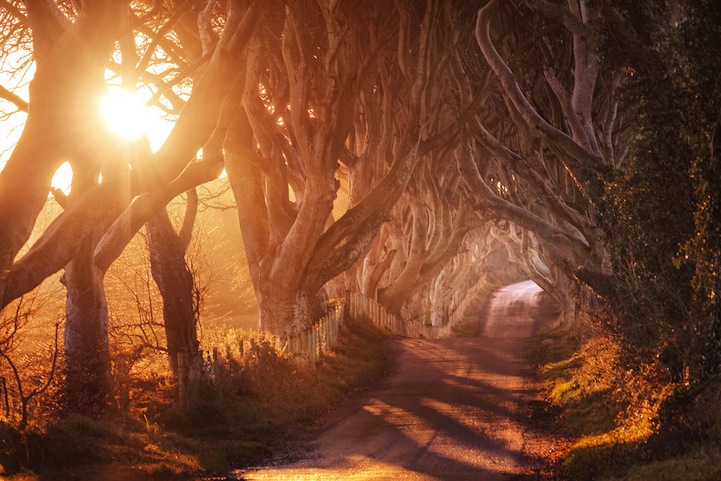 It's hard to believe that up until 15 years ago, only locals knew about that spectacular road. The Dark Hedges in County Antrim, Ireland is a beautifully eerie avenue of beech trees that were planted by the Stuart family back in the 1750s. That makes these gnarly trees almost 300 years old! The Stuart family's intent was to create a striking landscape to impress its visitors as they approached the entrance to their mansion, the Gracehill House. Now, the Dark Hedges has become one of the most photographed natural phenomena in Northern Ireland. You may notice the mystifying scene from the hit HBO series “Game of Thrones,” as it's served as a setting for the famous Kingsroad.