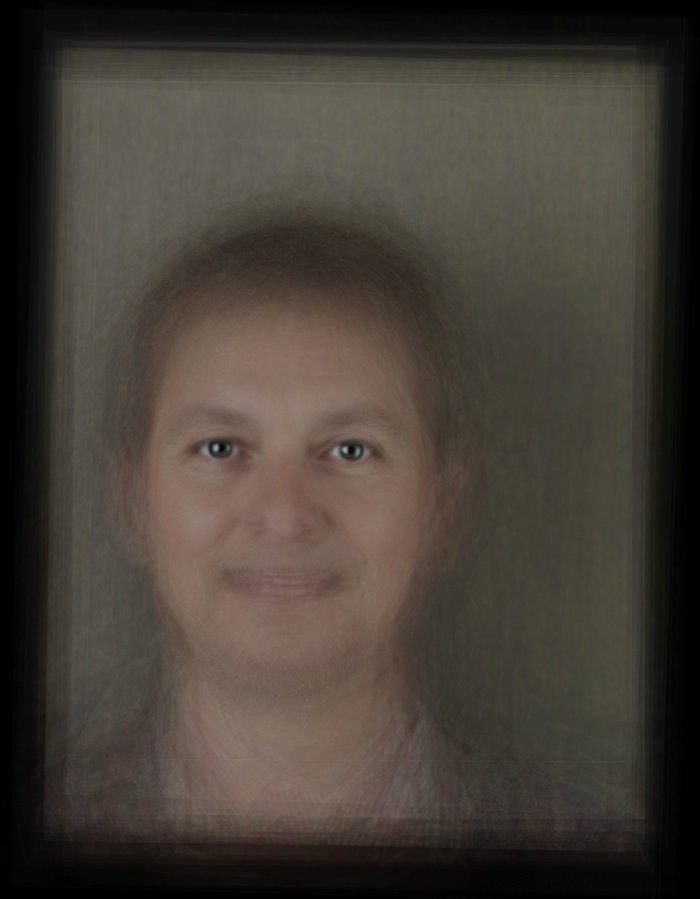 “I then merged 100 of them together in Photoshop, giving them each 1% opacity, aligning each pair of eyes so they lay precisely over each other one layer at a time. The result really astounded me. It looked very peaceful, gentle and trusting. It was as though that face represented all the good aspects of all the people in the photo.”