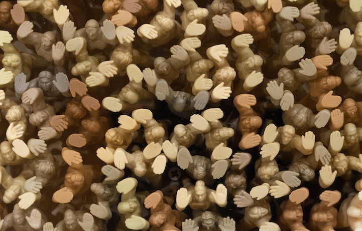 One of the most exciting contemporary artists of our time, Korean Do Ho Suh, created this large sculptural installation that doesn't look like much until you come closer. Glass plates rest on thousands of multicolored miniature plastic figures who are crowded together with their heads and arms turned skyward. Together, they are holding the weight of the individual visitor who steps onto the floor.
