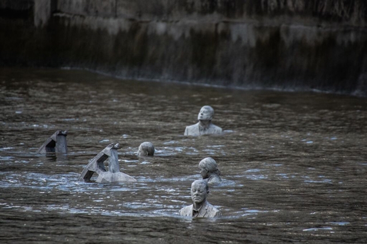 The Rising Tide is on view until September 30 as part of Totally Thames, a month-long series of events centered around the river. The visibility of the installation changes with the ebb and flow of the water, but it's fully visible from the Vauxhall riverside walkway for up to two hours on either side of low tide.