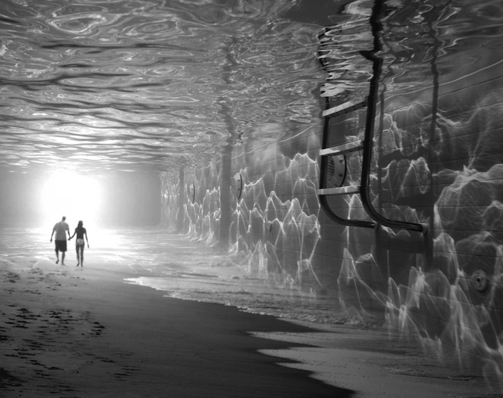 Barby also plays with perspective in a lot of his work. He even incorporates a multi-angle technique that artist M.C. Escher, one of his artistic idols, would be proud of. Drawing much of his inspiration from surrealist painters like Escher as well as Rene Magritte and Roger Dean, the photographer also ironically attributes the concept for his atypical creations to everyday life. He says, “Visionary inspiration and imagination is not a technical skill learned in school.”