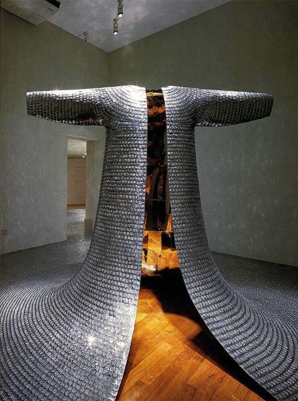 At first glance this may look just like a robe but look a little closer and you'll find that this enormous suit of armor is actually thousands of polished military dog tags all put together. Titled Some/One, the art piece, created by contemporary Korean artist Do-Ho Suh, asks the viewer to both understand and appreciate how a solider has his own identity yet is part of a larger troop or military body. The ghost-like suit of armor also has a reflective mirror body which asks the viewer to think about what this piece means to them.