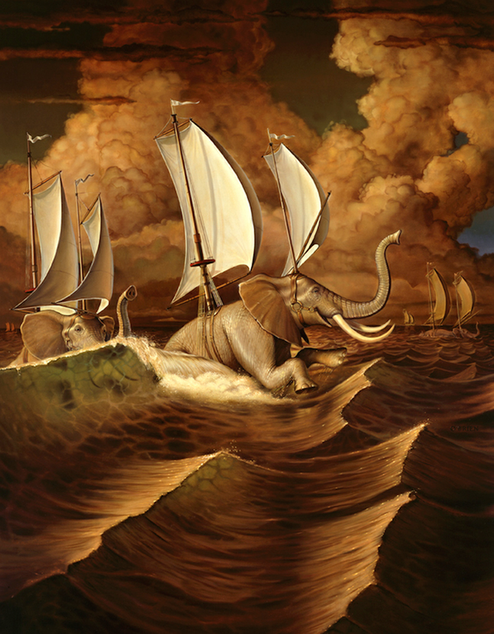 O'Brien has incredible talents in creating illustrations that almost come alive on the page. To achieve the high quality final results of each painting, he describes his process, “I do a detailed drawing on gessoed panel. I work on sepia or grey half tone and draw with pencil, charcoal pencil, colored pencil, gouache. When that is done I use an airbrush to even tones and set the key of the artwork and add light and dark to areas. I then apply an acrylic coat to the drawing and paint over it in thin layers of oil paint. There, all the details and no secrets.”