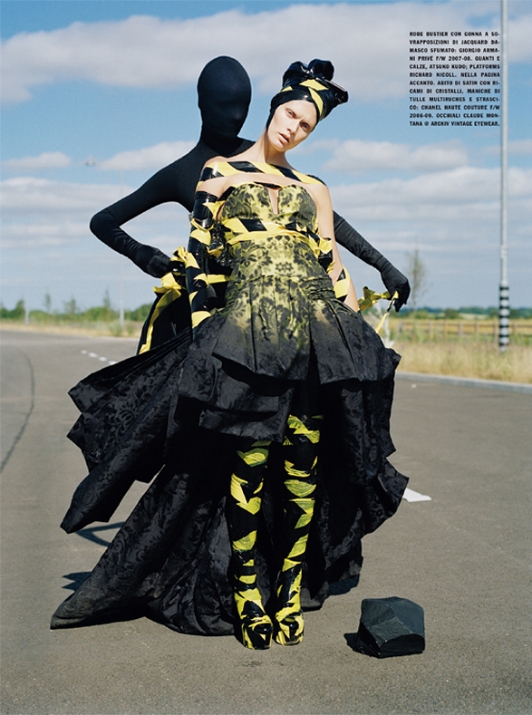 British fashion photographer Tim Walker recently showed off an interesting and eye-catching editorial titled High-Style. This time it was for Vogue Italy's September issue and it featured 33-year-old Polish fashion model and actress Malgosia Bela. With the help of some creepy characters, the model reenacted some of our most familiar street signs, making us remember why we love Walker's whimsical take on the world.