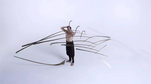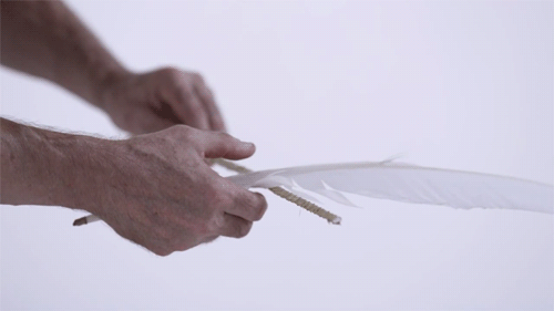 Balance is a short film directed by Tobias Hutzler that captures the unbelievable balancing act performed by artist Mdir Eugster of Rigolo Swiss Nouveau Cirque. Set against a blank, white backdrop, the performance artist carefully assembles 16 bare ribs of palm leaves and a feather by balancing each piece in front of the other. The separate elements are unconnected throughout the entire grueling process as Eugster manages to keep his footing for the duration of the balancing act.