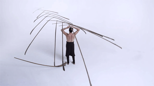 More than a simple test of stability, Balance presents a visually mesmerizing look at the form that Eugster creates and eventually steadies on his head. The artist's criss-crossing pattern leaves one to look on in wonderment, especially against the white backdrop which makes it seem like the materials are simply floating in midair. The short film bewilders viewers while simultaneously exhibiting Eugster's incredible talent, step by step. Be sure to check out the full video, below, and feel free to pause and rewatch several times.