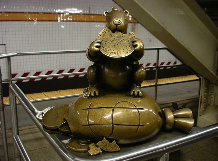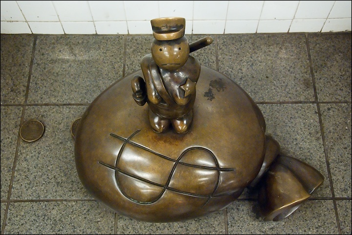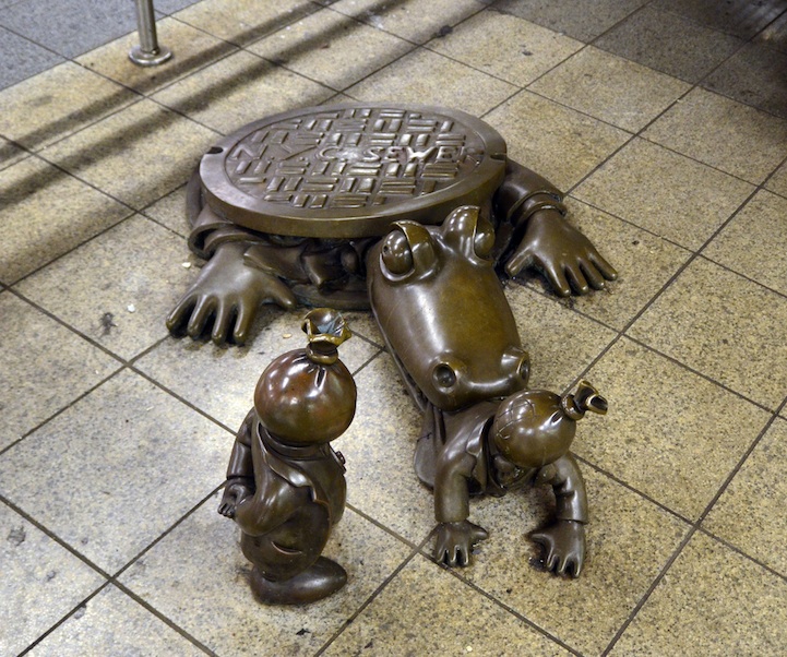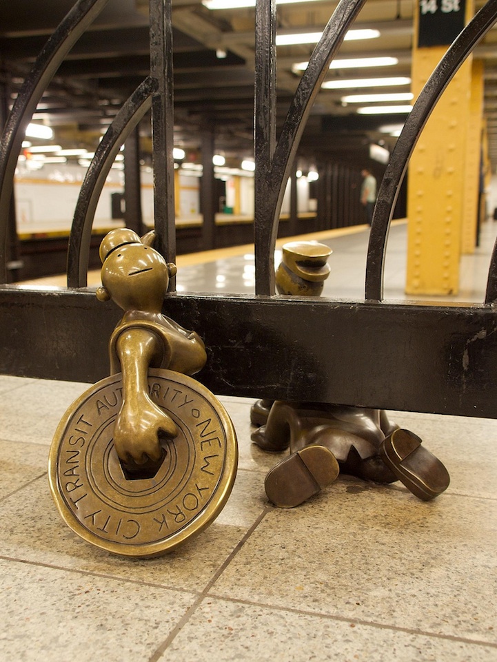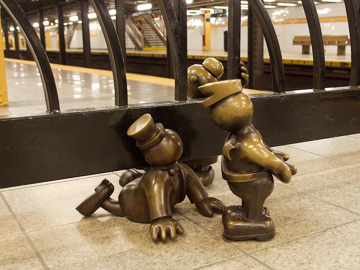 If you've been to NYC within the past 10 years or so, you may have seen this grand public art installation down in the NYC subway. Located in the 14th Street and 8th Avenue station are over 100 little cast-bronze sculptures depicting life in NYC. When artist Tom Otterness started the Life Underground installation back in 2002, he probably could never have imagined how popular it would become. Of course, the work took 10 years to complete and the artist ended up making four times the amount of work he was originally commissioned to create. As he said, “I kept putting more and more work in. I put probably five times what they paid me to put in. Finally my wife stopped me…”